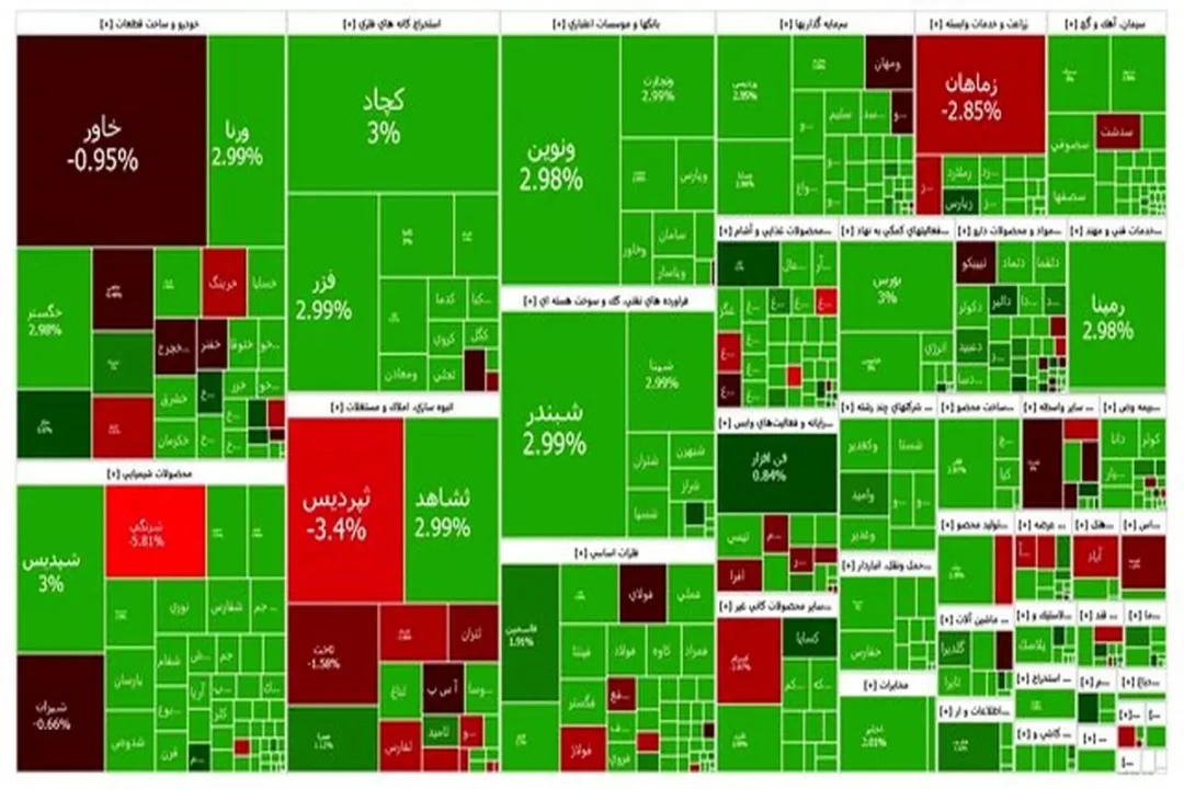 پس از حدود دو هفته التهابات سیاسی که با نوسانات کاهشی بازار سرمایه در ایران همراه شده بود امروز و بعد از آنکه اعلام شد حمله رژیم صهیونیستی با پاسخ پدافندی ایران بی‌اثر شده است، بورس ایران سبزپوش و در دقایق ابتدایی امروز شاخص کل ۹۲۷۲ واحد رشد کرد.